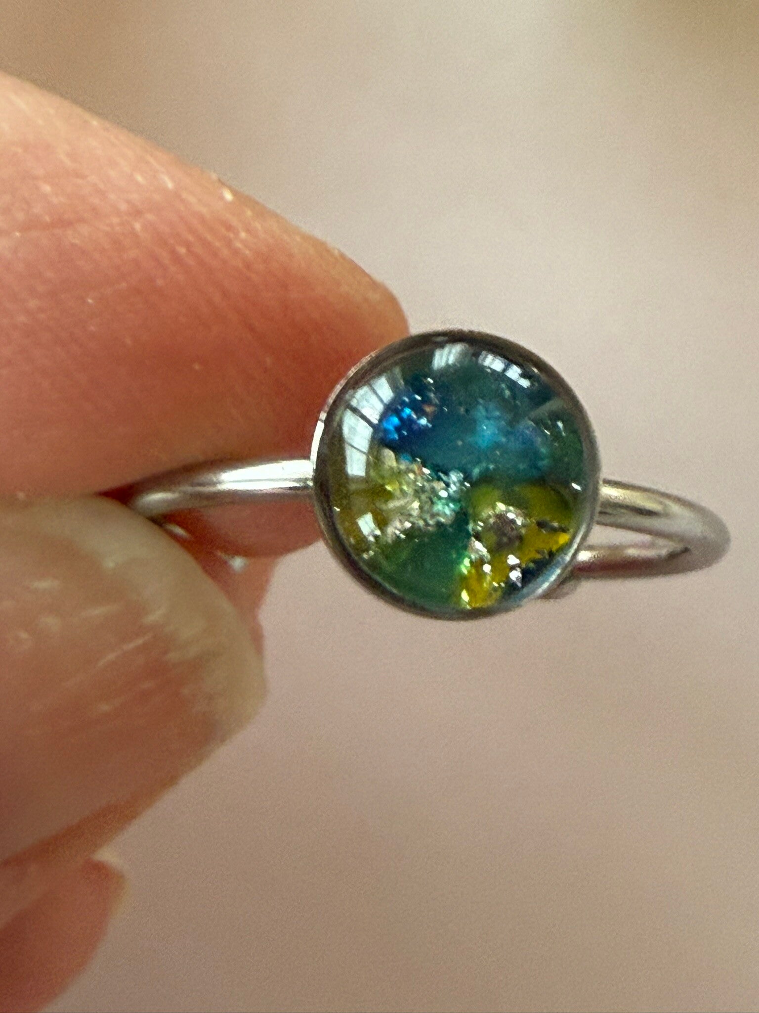 Ring rund silberfarben; blau-grün