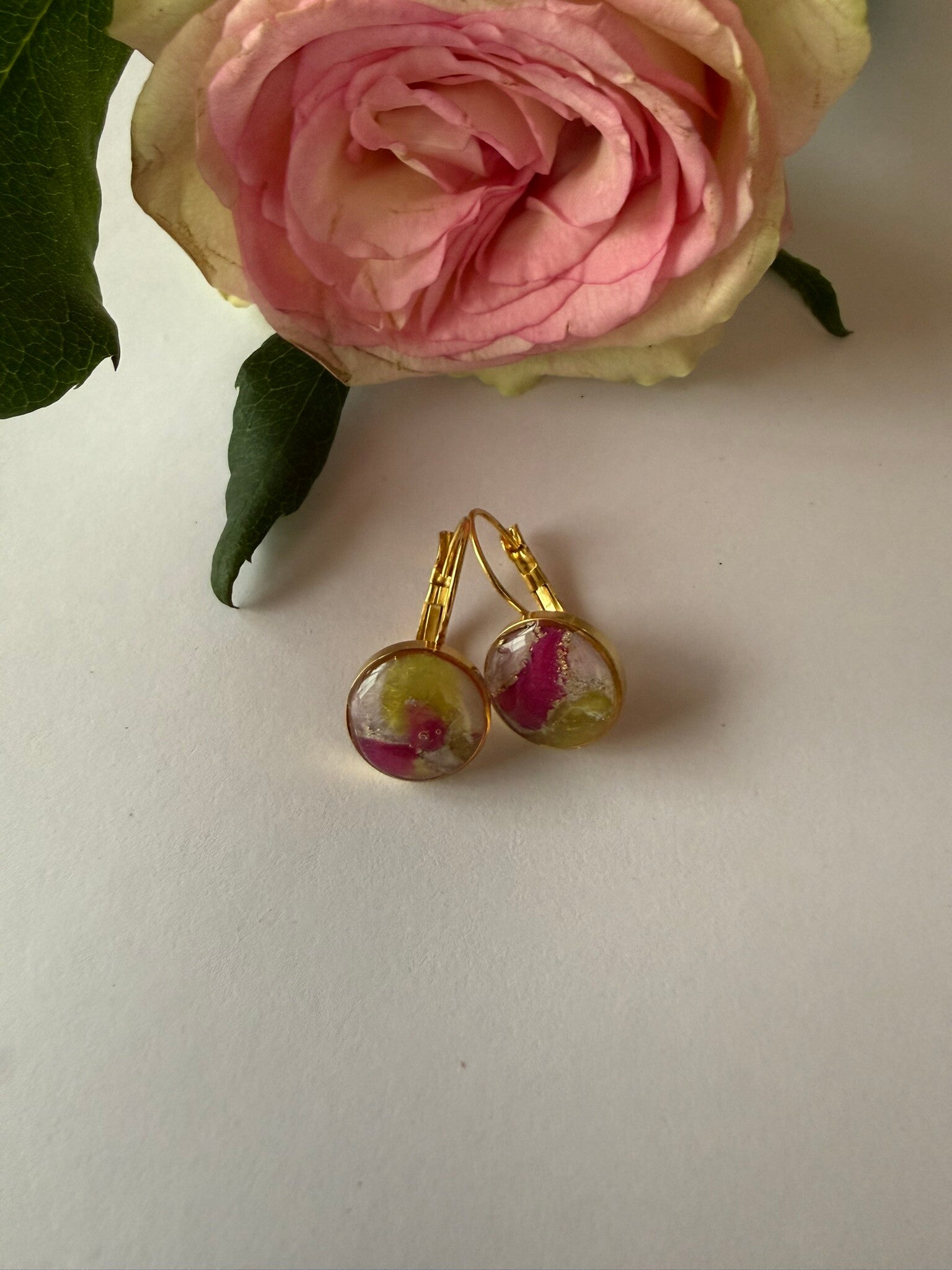 Klappverschluss Hängeohrringe 10mm; goldfarben; gelb-pink